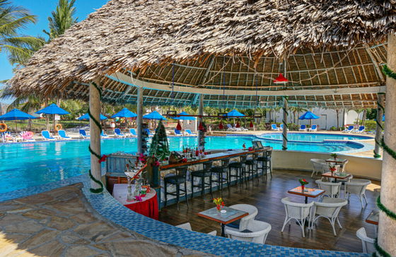Whilst this coast line is affected by tidal movement the property also has a great swimming pool with a swim up bar. There is also a resort shuttle to Kiwengwa beach club where water sports facilities are available, at extra charge. The airport and the UNESCO World Heritage site of Stone Town is just over an hour’s drive away.