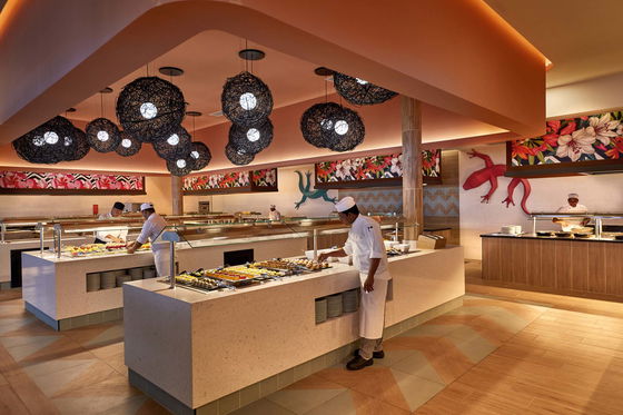 - Buffets and dishes prepared live. Vegetarian options available. Dessert buffet.