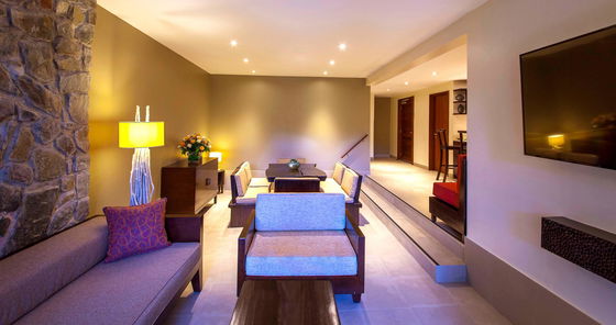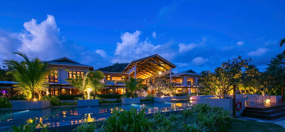 The resort features elegant plantation-style architecture set on Baie Lazare beach, blending seamlessly with the island's natural landscape, and offers spacious rooms and suites with private balconies or terraces that showcase stunning ocean or hill views, creating a serene and luxurious atmosphere.
